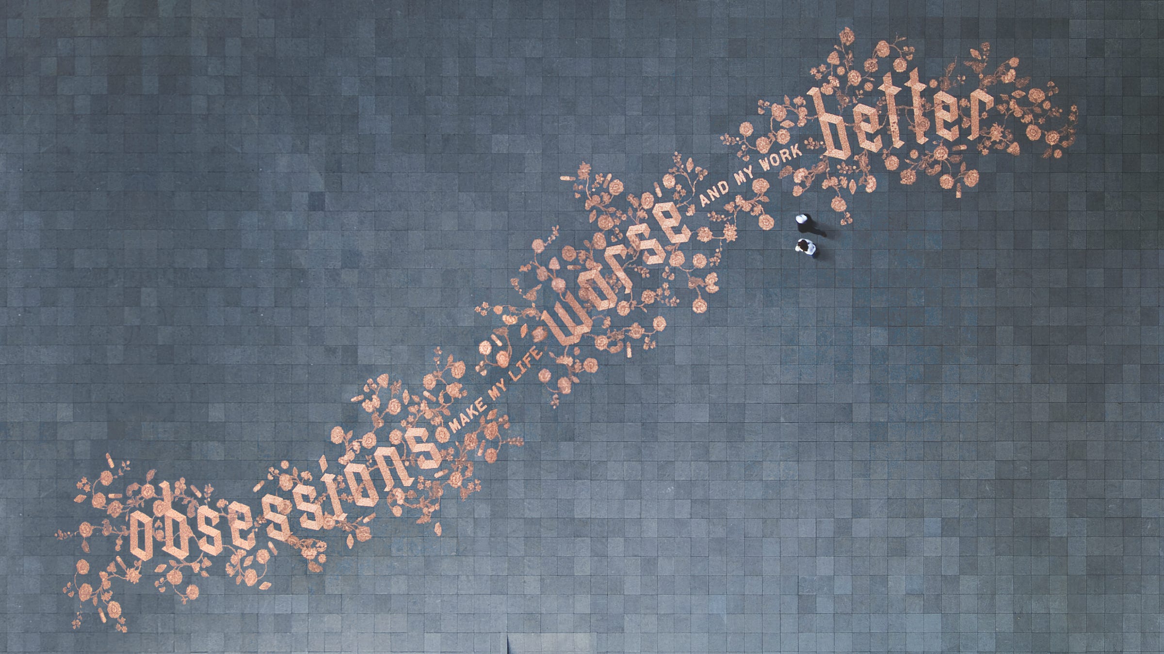 Il titolo di questa pubblicazione trae ispirazione da una potente opera del 2008 di Sagmeister Inc. In collaborazione con la città di Amsterdam per il progetto Urban Play decisero di esplorare nuovi approcci aperti al design, allo spazio pubblico e alla creatività in città. Nella piazza Waagdragerhof , insieme a più di 150 volontari, con l'uso di 250.000 monete da un centesimo, realizzarono un'opera tipografica che dice: “Obsessions make my life worse but my work better“ ovvero “Le ossessioni rendono la mia vita peggiore ma il mio lavoro migliore”. Il lavoro richiese otto giorni con una meticolosità nella selezione dei centesimi, dalle tonalità molto ossidate a quelle meno ossidate, per creare quattro tonalità e ottenere diverse sfumature in un'opera fatta per essere portata via.